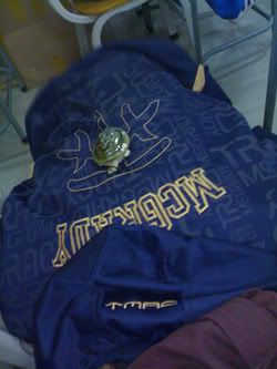 然后今天早上复习,准备进考场的时候,某人对俺说:“加油哦,队长保佑你。”